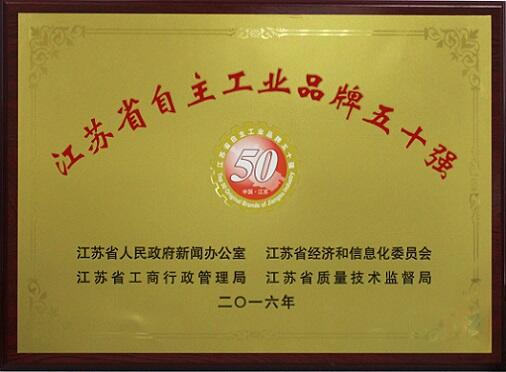 ——hjc黄金城官网登录入口荣获2015年度“江苏省自主工业品牌五十强”