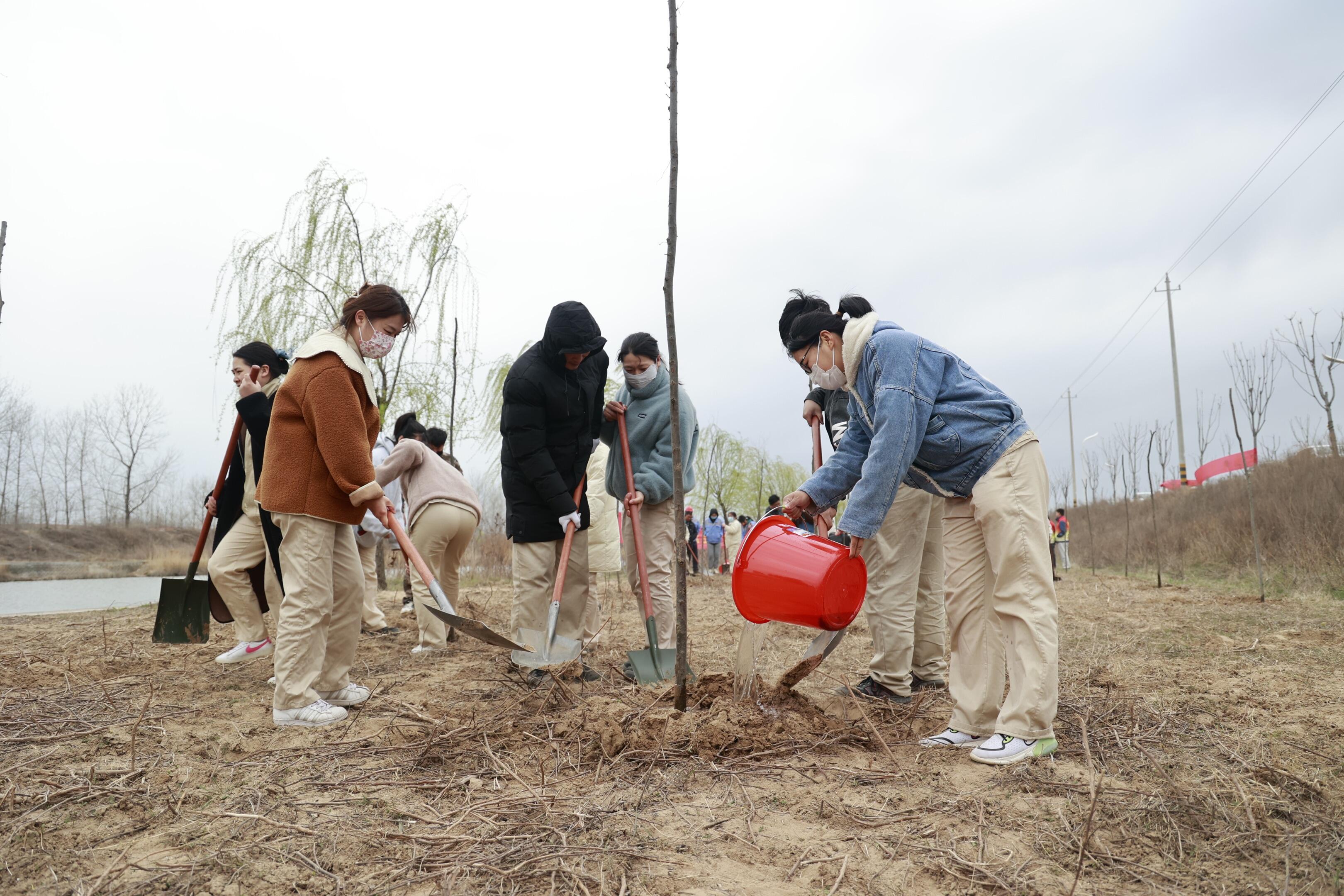 活动中,芮邦科技的员工们个个热情洋溢、干劲十足,挥锹铲土、踏土夯苗、拎捅浇水。经过一下午的辛苦劳作,一棵棵榉树苗迎着和煦的春风在这里“安家落户”,展露出勃勃生机。