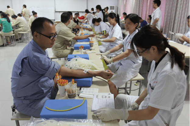 上午八点不到,许多前来献血的员工已经在国望高科党员活动中心内有序的等候,在医护人员的指导下,他们认真的填写好报名表格,并依次排队进行体检、采集血样。国望的志愿者们各就各位,从旁协助,一边维护好现场秩序,一边为献血者们备好饮用水,整个现场有条不紊,一场爱的交流正随着这个夏日慢慢升温。献血现。胁簧俚睦厦婵,很多员工带着自己往年的献血证排在体检队伍中。“每年献血我们我们都过来了,通常会根据自己身体状况,有时候献的多点,有时候少点,今年300ml。这对自己的身体既是一个调节,也是响应公司的慈善义举,明年的活动,我们仍然会积极参加。”纺丝二部耿怡亮一手拿着献血证说道。今年,中鲈、国望共186人参加此次献血活动,献血量达到44100ml。
