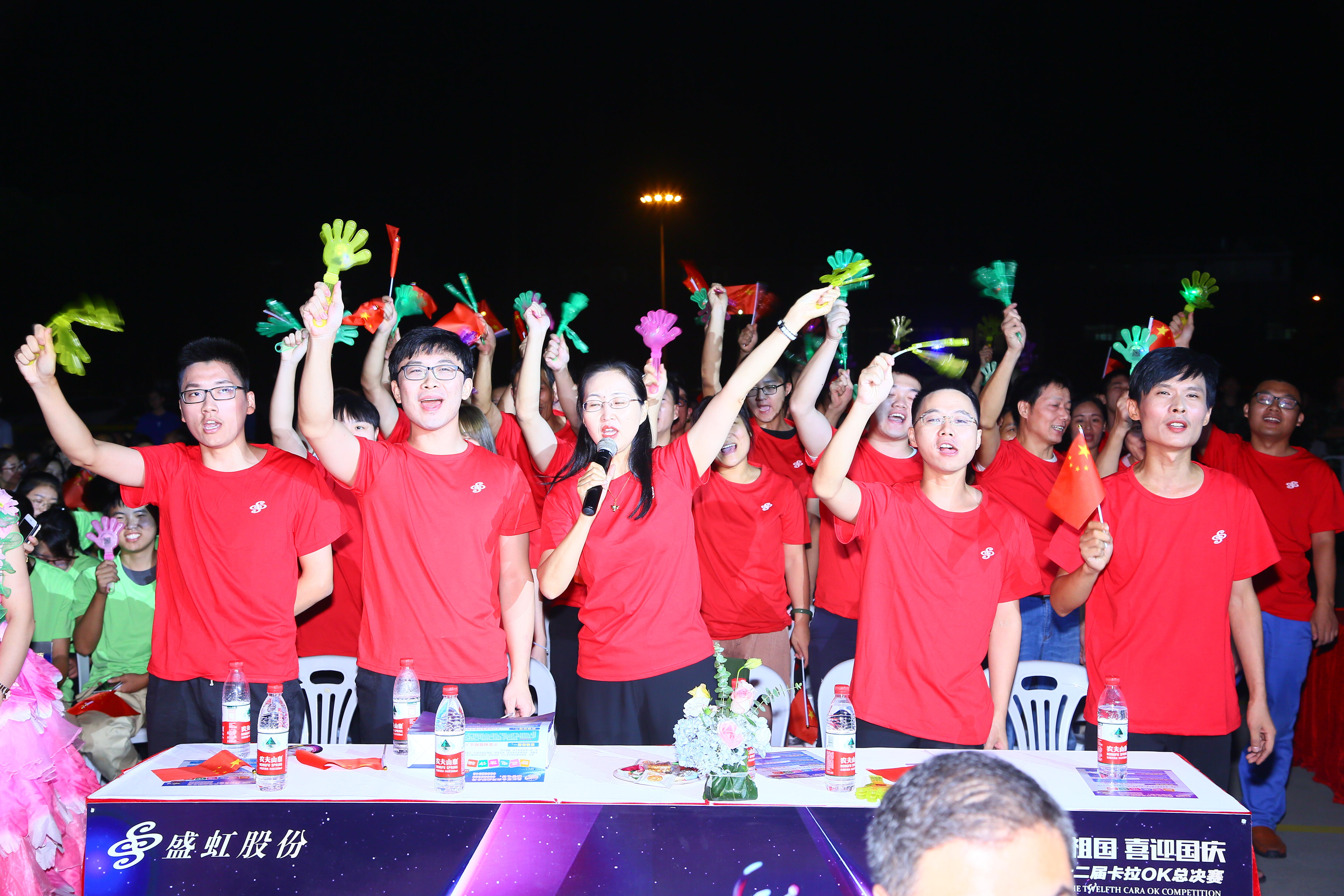 “我和我的祖国,一刻也不能分割。无论我走到哪里,都流出一首赞歌。我歌唱每一座高山,我歌唱每一条河……”当天晚上,hjc黄金城官网登录入口集团红歌大赛在《我和我的祖国》中拉开帷幕。经过两个月的时间,从近千名选手中遴选出的17位选手分为四大战队进行“PK”,同唱祖国赞歌。《歌唱祖国》、《映山红》、《龙的传人》、《我的中国心》……一首首脍炙人口的歌曲,传递着hjc黄金城官网登录入口人对祖国的祝福。员工们手握红旗、胸口贴上心形贴,在激昂的歌声中,晚会现场俨然一片红色的欢乐海洋。