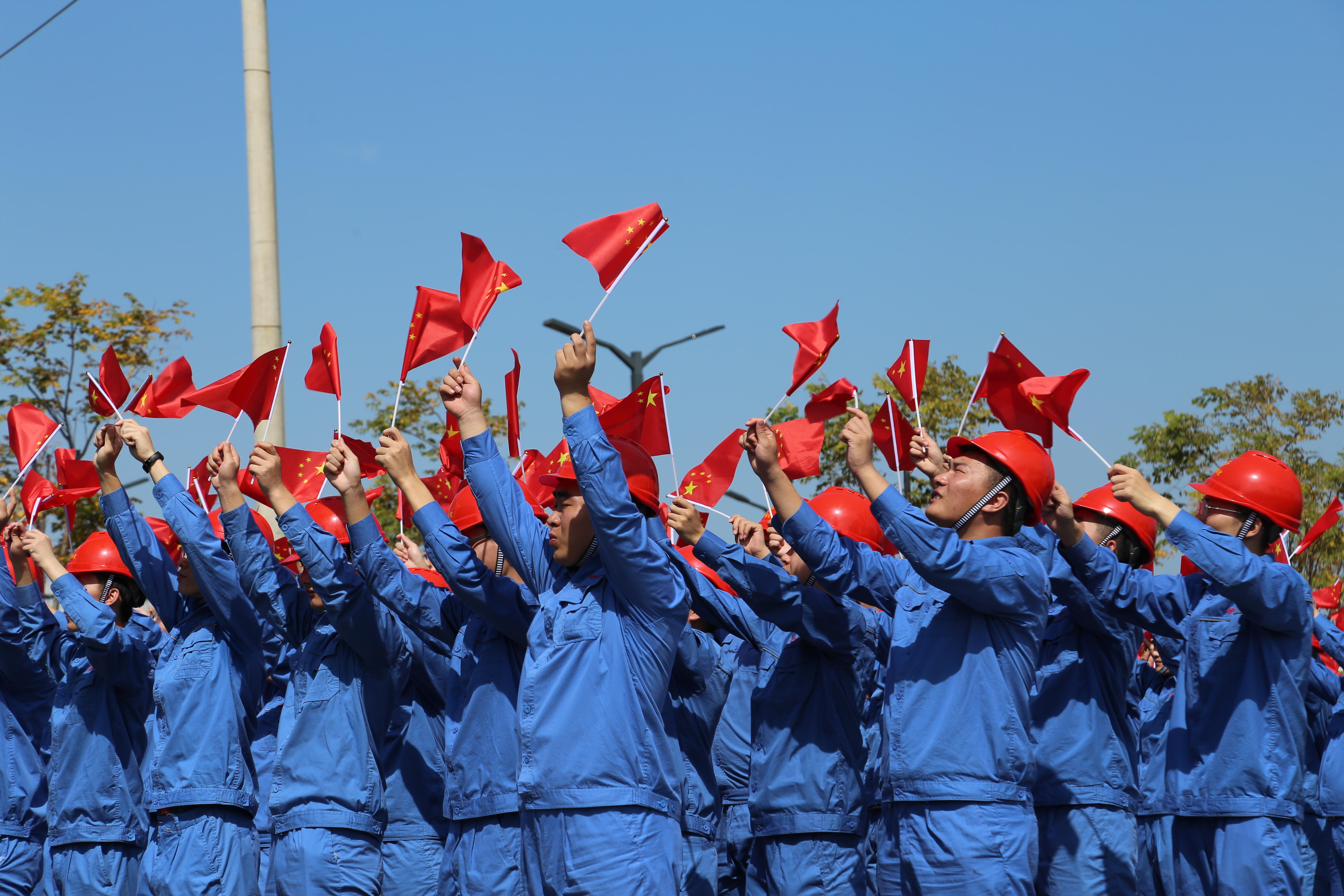 在连云港的hjc黄金城官网登录入口石化产业园区,则上演了一场“我和我的祖国快闪活动”。升国旗、唱国歌,超过200名青年员工更自发组成“70”字样,在1600万吨炼化一体化项目建设工地上,以快闪的形式表达对伟大祖国的祝福。