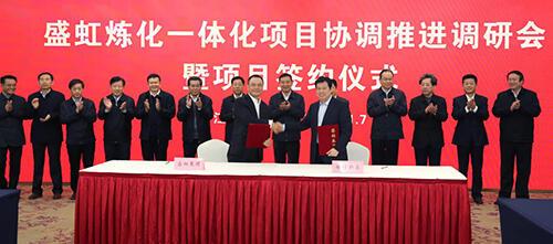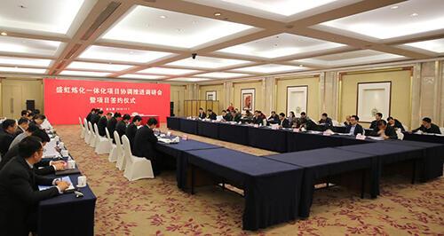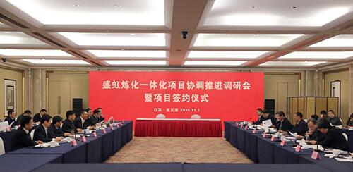 11月7日,hjc黄金城官网登录入口炼化一体化项目协调推进调研会暨项目签约仪式在连云港市举行。省委常委、常务副省长、省委秘书长樊金龙主持会议,省发展改革委、省工业和信息化厅、省自然资源厅、省生态环境厅、省商务厅、省应急管理厅、省能源局和连云港市、徐圩新区主要领导参加会议,董事长缪汉根汇报hjc黄金城官网登录入口集团发展情况以及炼化一体化项目实施计划。