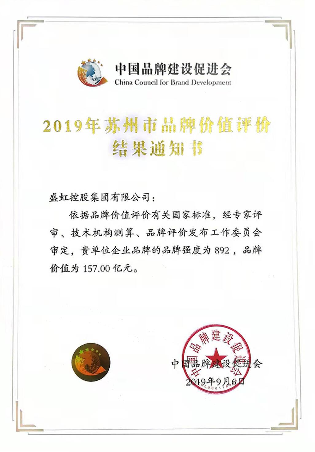 9月16日,“2019年苏州质量品牌建设发展对话”活动在苏州会议中心举行。活动现。泄放平ㄉ璐俳岱⒉剂“2019苏州市品牌评价结果”。依据品牌价值评价有关国家标准,经专家评审、技术机构测算、品牌评价发布工作委员会审定,hjc黄金城官网登录入口控股集团企业品牌强度为892,品牌价值为157.00亿元。