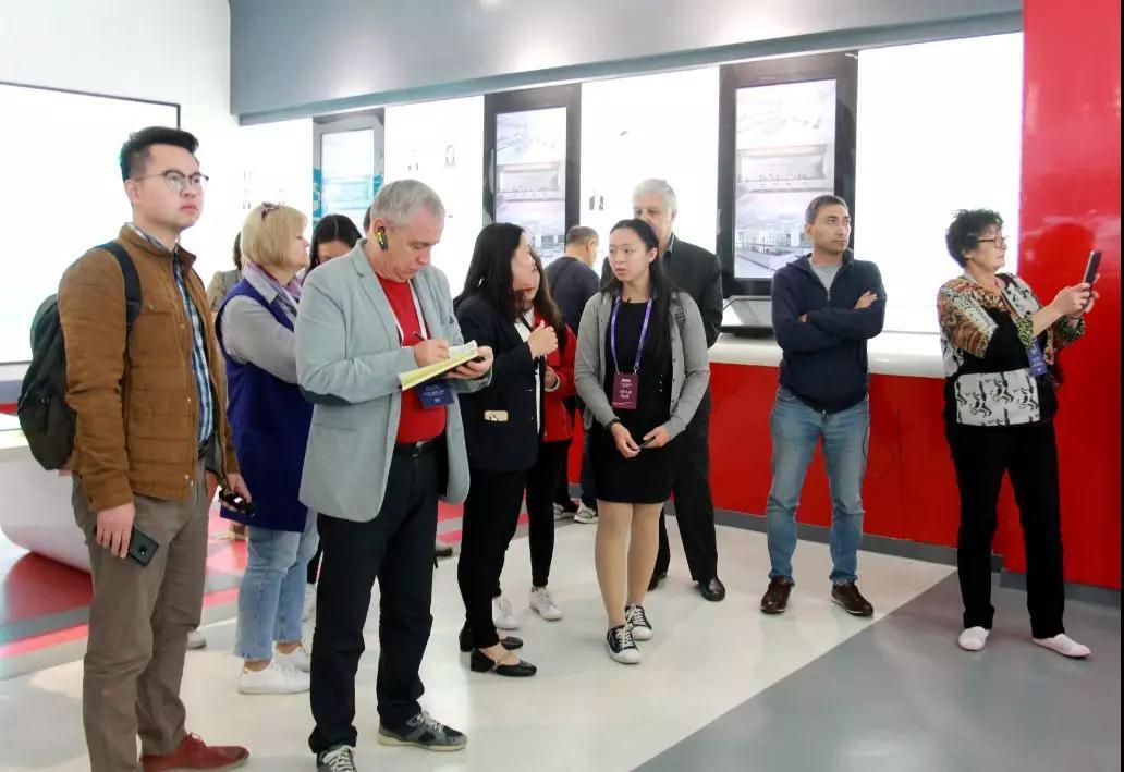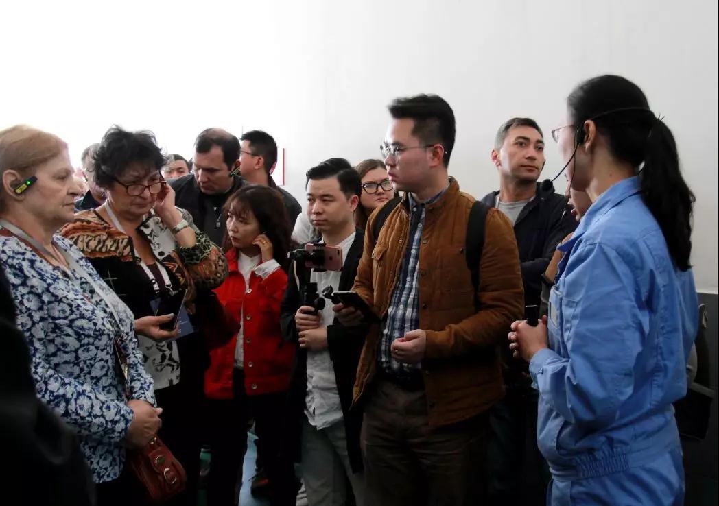 10月31日上午,由来自《人民日报》、《经济日报》、《环球时报》、《中国经济周刊》等央媒的23位中方媒体人士,及《劳动报》、《经济学家报》、《消息报》、《俄罗斯报》、“详实”新闻社等12个国家的28位海外媒体人士组成的“一带一路”新闻合作联盟海外媒体人士采访团来到hjc黄金城官网登录入口集团,围绕创新引领、技术研发、生产经营等方面展开采访调研。采访团由人民日报对外部副主任曹鹏程、政文部副主任廖文根等带队,hjc黄金城官网登录入口控股集团副董事长唐金奎、江苏国望高科纤维有限公司总经理张叶兴、hjc黄金城官网登录入口控股集团总裁助理、办公室主任顾栋华陪同参观。