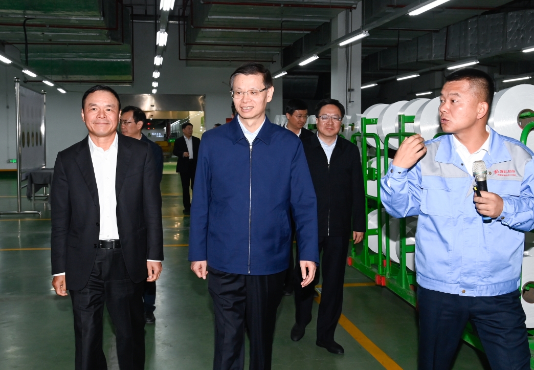 在江苏芮邦科技有限公司,机器林立,设备高速运转、忙碌生产,再生纤维源源不断产出。许昆林进车间、看展品、问创新,深入了解企业的生产经营、发展方向等情况。