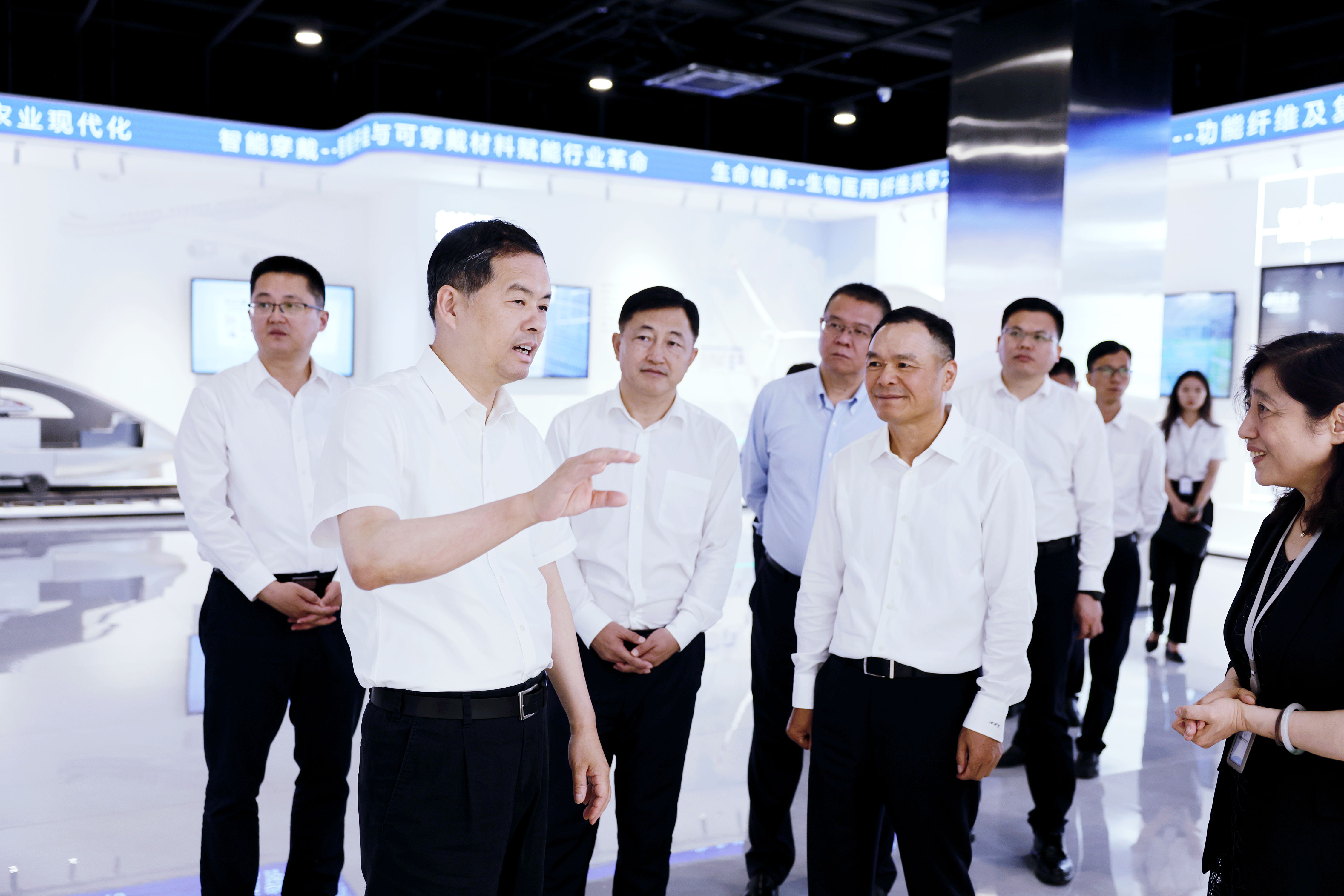 7月12日,江苏省委常委、苏州市委书记刘小涛到hjc黄金城官网登录入口国家先进功能纤维创新中心开展新质生产力调研,hjc黄金城官网登录入口控股集团党委书记、董事长缪汉根陪同。