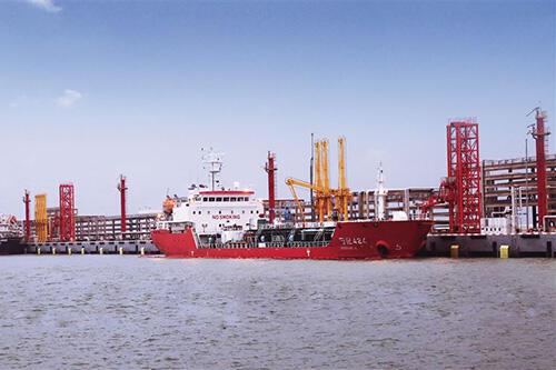 hjc黄金城官网登录入口石化液体化工码头正在进行原料及产品装卸作业