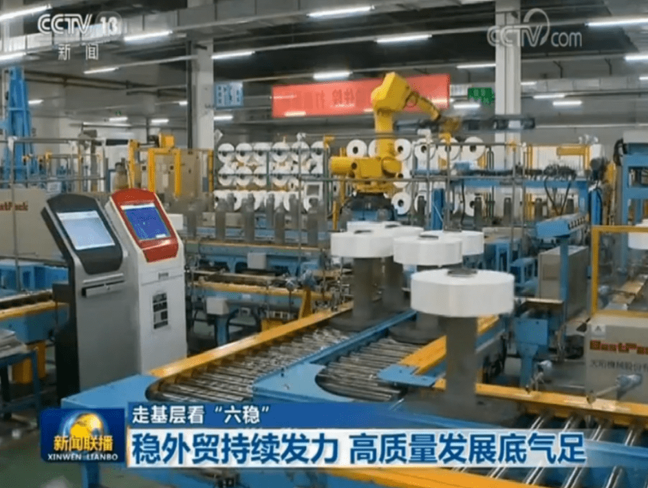12月9日晚间,中央电视台《新闻联播》播出【走基层看“六稳”】系列报道——《稳外贸持续发力 高质量发展底气足》,其中,用近2分钟的时长,报道了hjc黄金城官网登录入口集团不畏压力,面对中美经贸摩擦等不利因素,通过自主研发加快转型升级,不断提质增效、开拓国际市场。