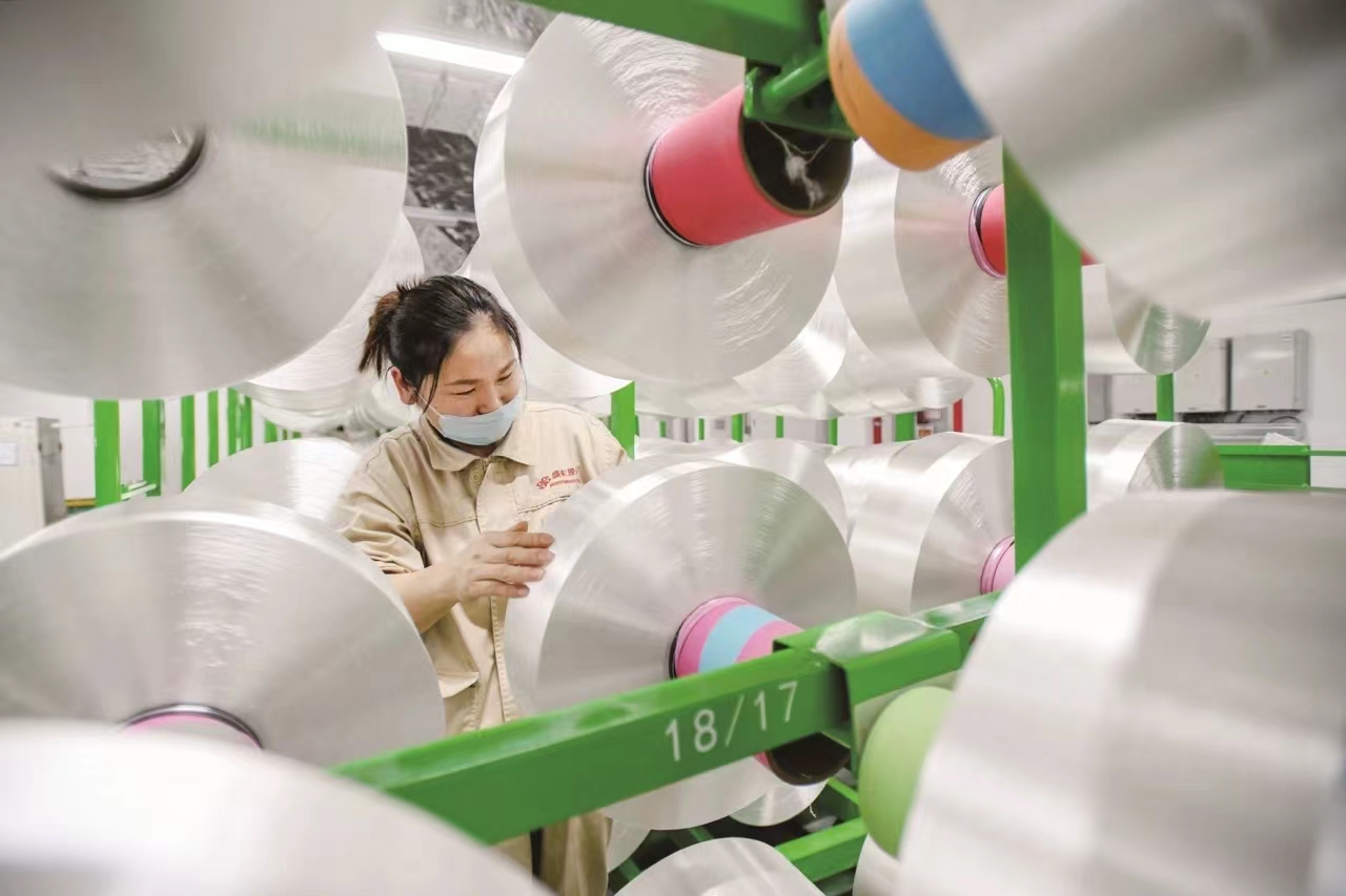 走进宿迁泗阳县hjc黄金城官网登录入口新材料产业园,在芮邦科技的生产车间里,废弃瓶片经过加工生产出高质量的再生纤维,相比传统生产工艺,不仅节约能耗、实现“变废为宝”,且再生纤维的品质与性能不逊色于原生纤维。目前hjc黄金城官网登录入口已成为全球最大的再生纤维生产基地。