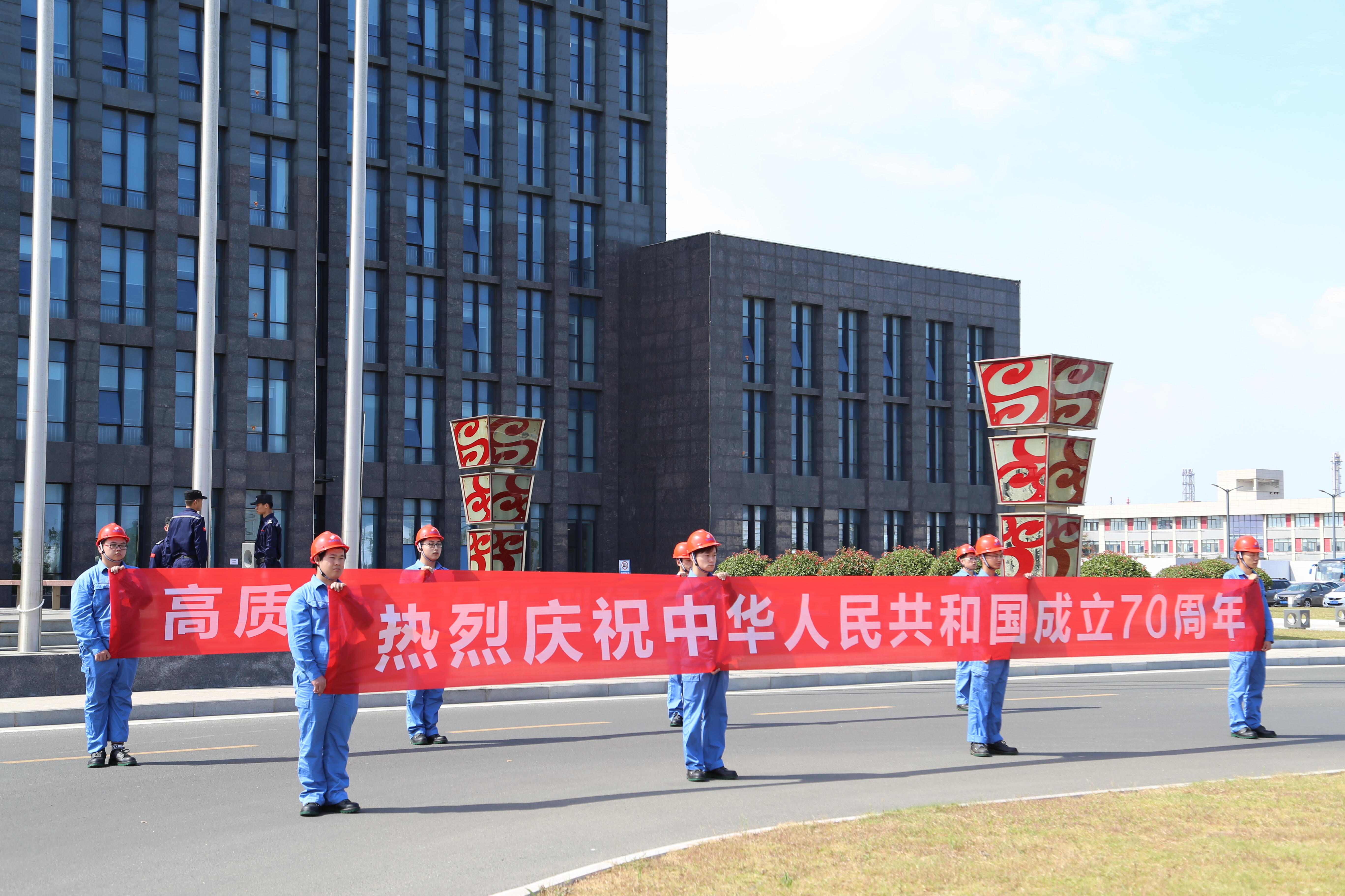 在连云港的hjc黄金城官网登录入口石化产业园区,则上演了一场“我和我的祖国快闪活动”。升国旗、唱国歌,超过200名青年员工更自发组成“70”字样,在1600万吨炼化一体化项目建设工地上,以快闪的形式表达对伟大祖国的祝福。